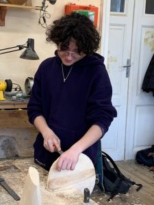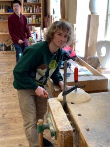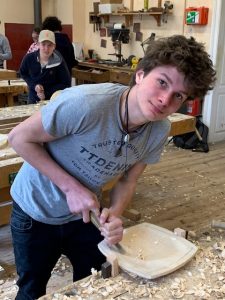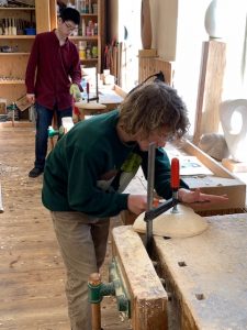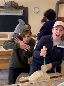 Ab der Mittelstufe finden Werkwochen bzw. Kunstwochen statt, in denen handwerkliche Fähigkeiten im Bereich des Holzschnitzens gefördert werden. Die Übergangsklasse ist gerade eifrig dabei Holzschalen zu schnitzen.